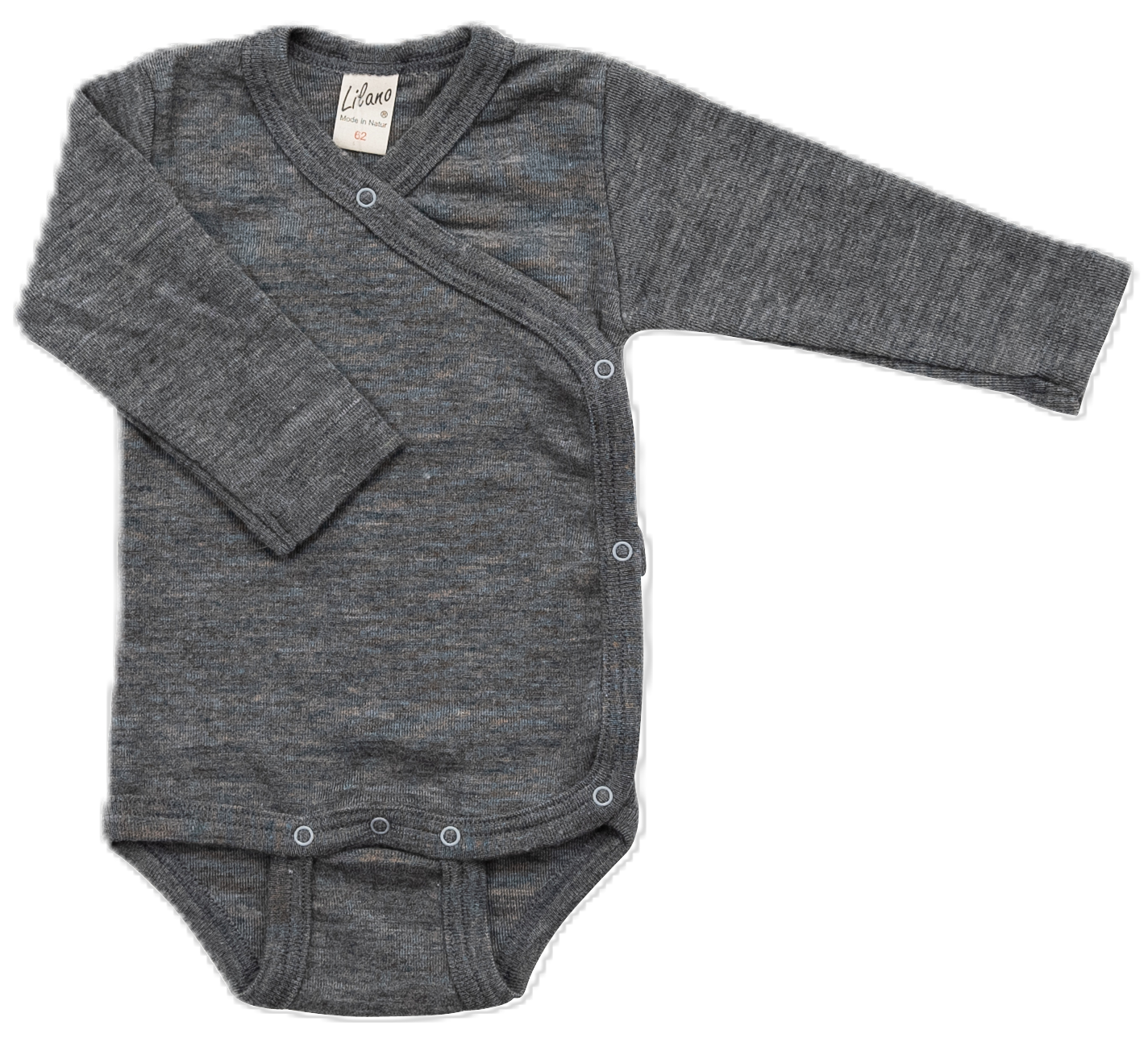 Wickelbody, Wolle/Seide, langarm, grau | Lilano