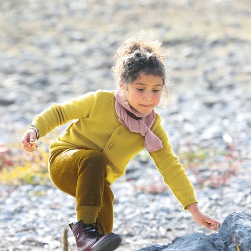 Eine leichte und bequeme Walkhose für zu Hause oder für Oben drüber für draußen. Der weite Schnitt am Gesäß ist in den ersten Größen ideal für kleine Windelträger. In den großen Größen sieht die Pumphose einfach cool aus und trägt sich auch genau so. Ein breiter, fein gestrickter Leibbund mit einem eingesetzten Gummizug, schließt am Bauch ab ganz ohne zu drücken, hohe Bündchen an den Beinenden ebenso.