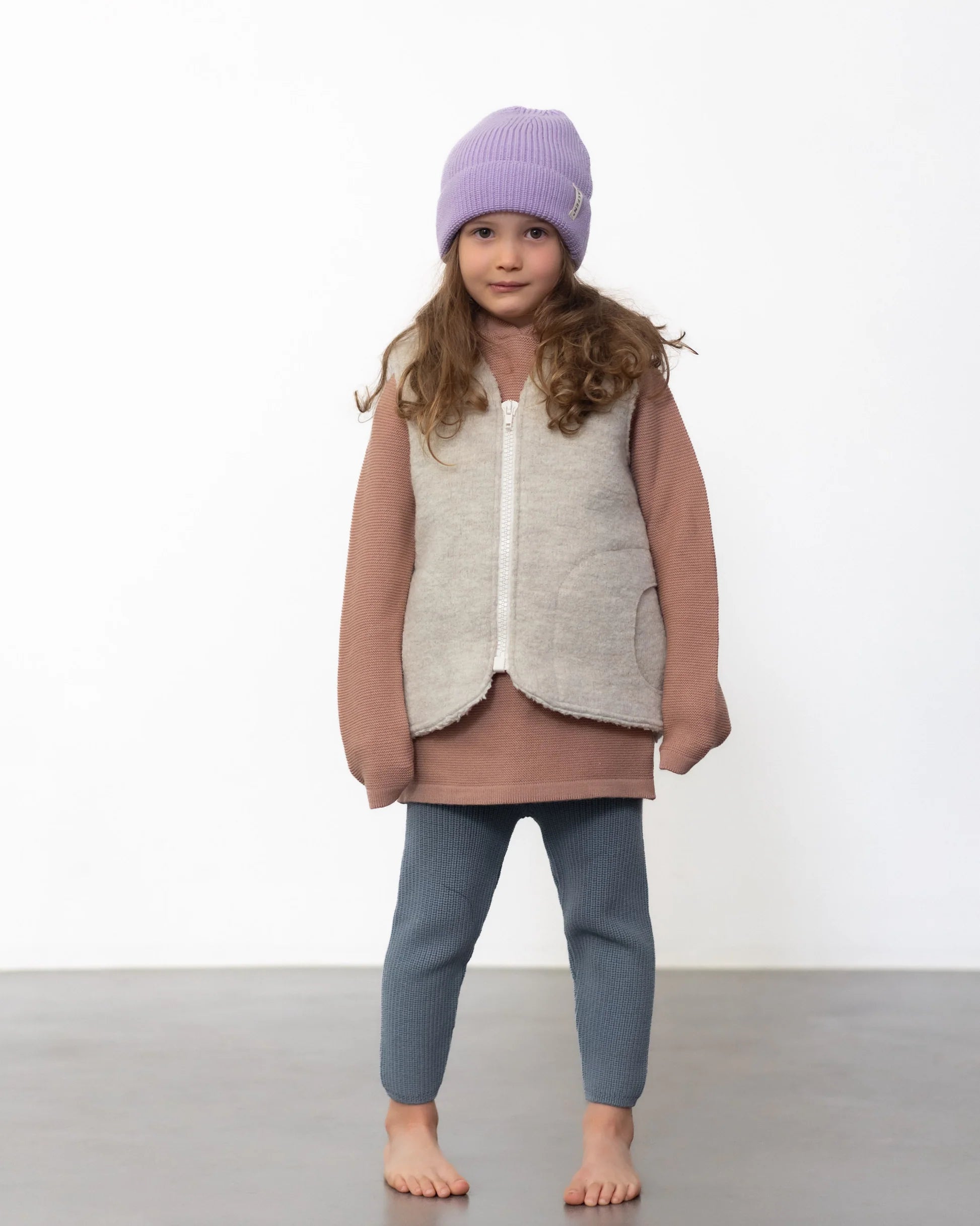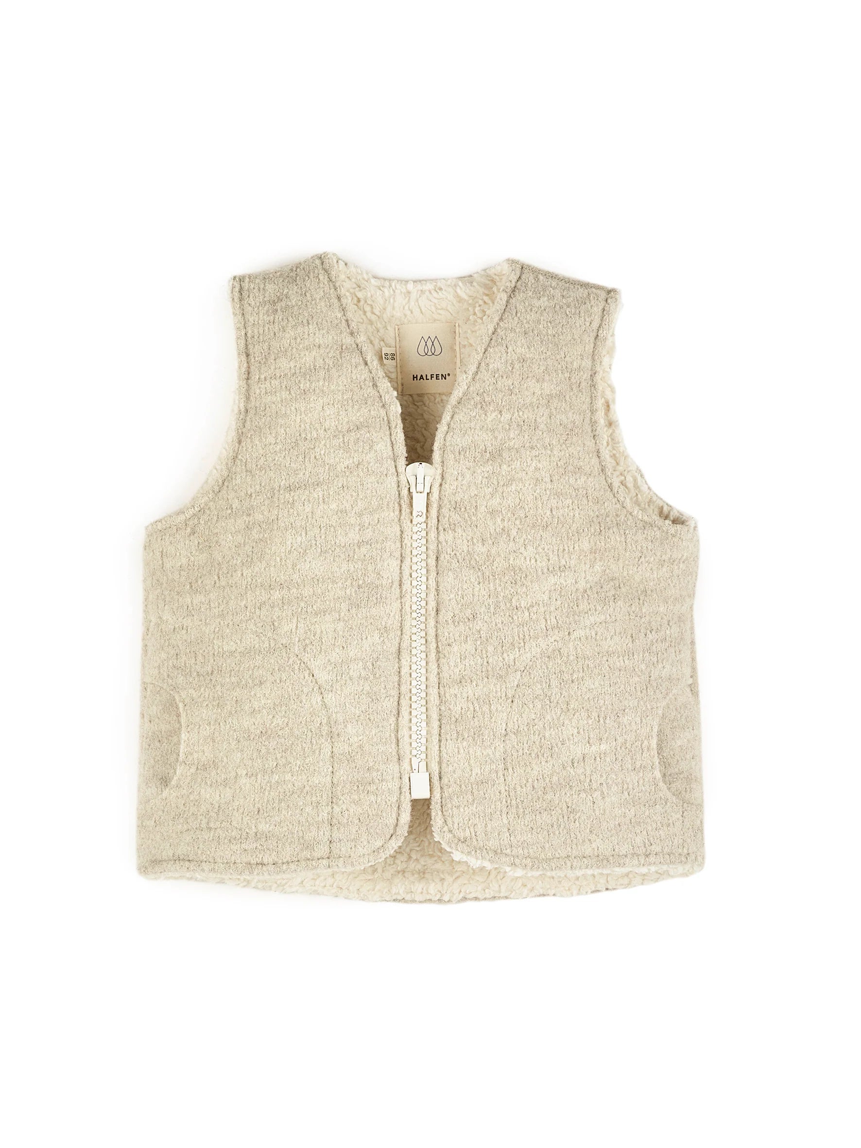 Die Halfen® Walkweste wird sorgfältig von Hand gefertigt und überzeugt durch hohen Tragekomfort. Dieses Wollkleidungsstück schützt Ihr Kind zuverlässig bei jedem Wetter – selbst an kühlen oder nassen Tagen bleibt es angenehm warm. Der elastische Stoff ermöglicht uneingeschränkte Bewegungsfreiheit bei allen Aktivitäten. Der GOTS-zertifizierte Walkstoff besteht aus reiner, kontrolliert biologisch erzeugter Schurwolle. Durch den Walkprozess, bei dem Feuchtigkeit, Druck, Reibung und Wärme die Fasern verfilzen, entsteht ein dichter, langlebiger und wärmerer Stoff. Die natürliche Wollfaser bietet exzellente Isolierung, ist wasser- und schmutzabweisend sowie antibakteriell und geruchsneutral – ideal für den täglichen Gebrauch.