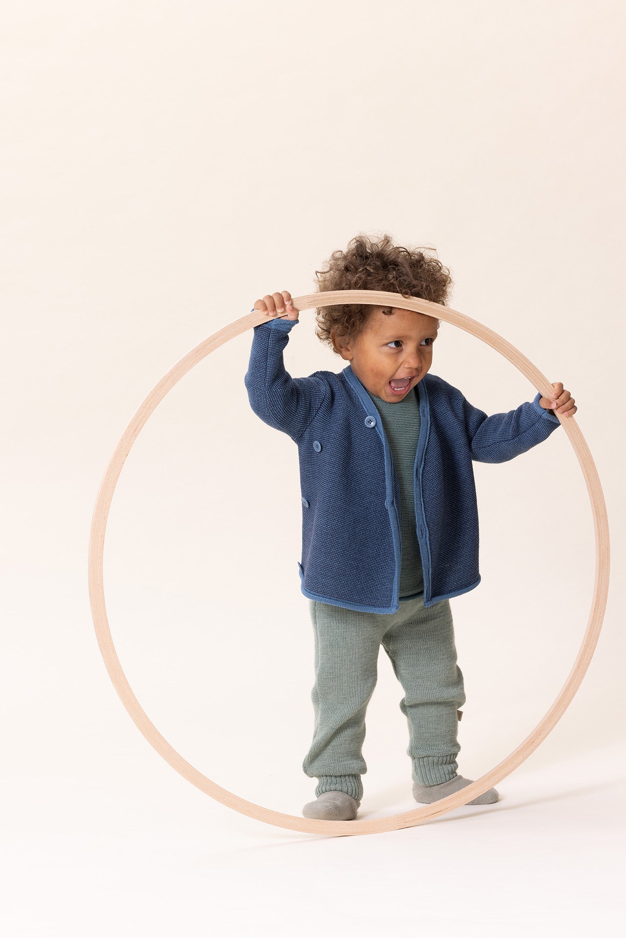 Die disana Wickel-Jacke aus feiner Merino-Schurwolle bietet höchsten Tragekomfort für die Kleinsten. Dank des praktischen Wickelverschlusses lässt sie sich auch bei liegenden Kindern mühelos anziehen. Außen sichere Steinnussknöpfe und innen ein zusätzlicher Knopfverschluss garantieren festen Halt, ohne auf der Haut zu drücken – ideal beim Spielen und Robben. Der elastische Linksstrick sorgt für Bewegungsfreiheit, während die Merinowolle mit ihrer natürlichen Weichheit, Wärmeregulierung und Feuchtigkeitsmanagement für ein angenehmes Klima sorgt. Die Wolle ist 100% naturbelassen, mulesing-frei und stammt aus nachhaltiger, biologisch abbaubarer Herkunft.